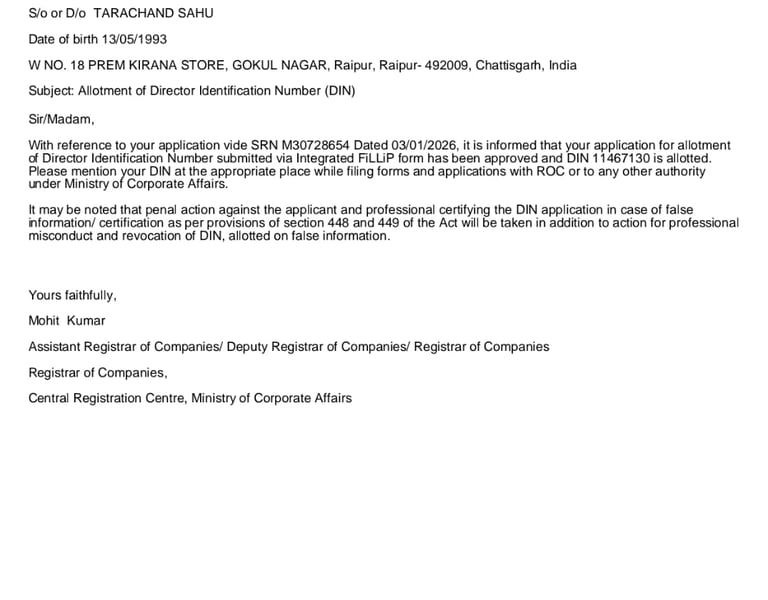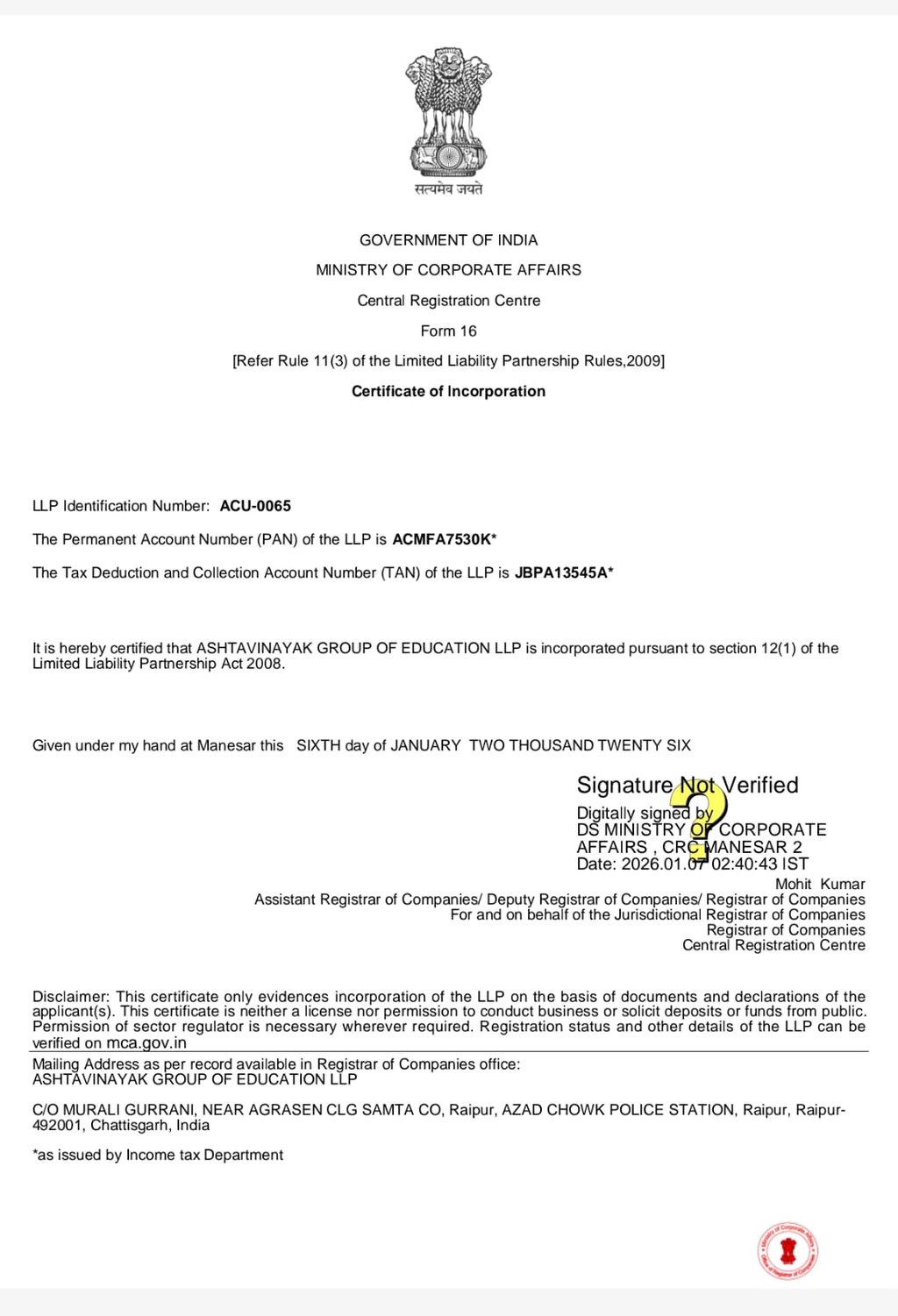 You can verify our company details anytime on the official Ministry of Corporate Affairs (MCA) portal using our: